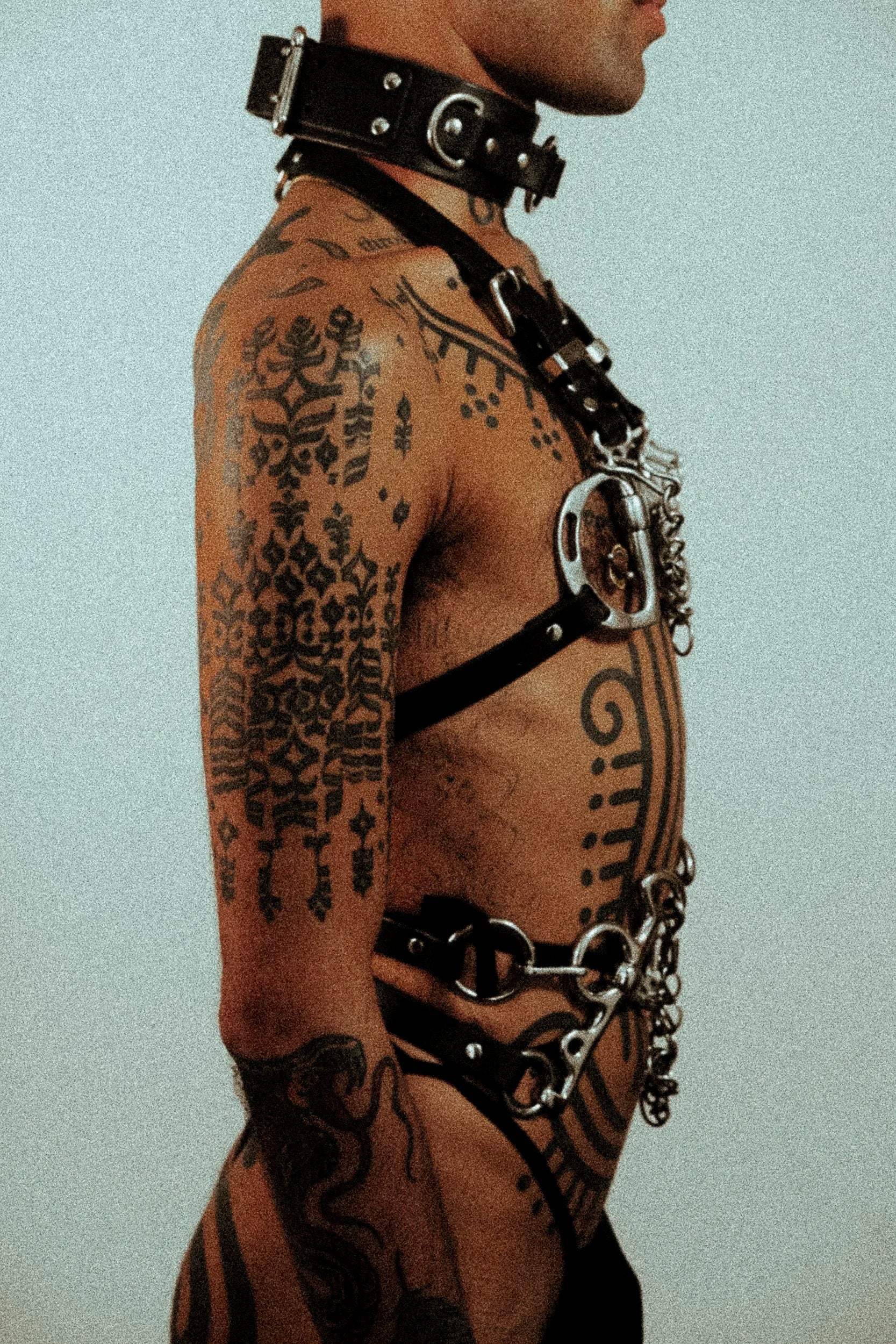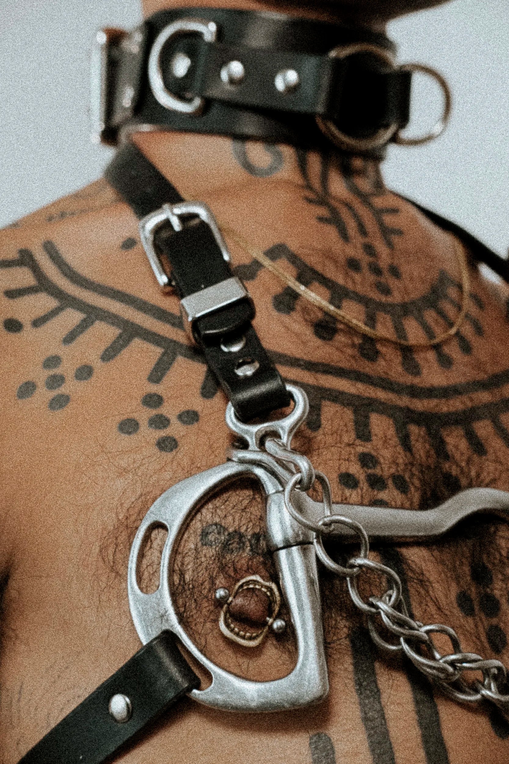 Introducing the Chest Bind II, the ultimate piece for those looking to explore their primal instincts. Our new design features a straight bar across the chest, reminding you to stand tall and confident, while the cool steel against your skin ignites your senses. The tuggable chain attached to the bar adds an element of excitement and play, allowing you to be taken for a walk like never before.