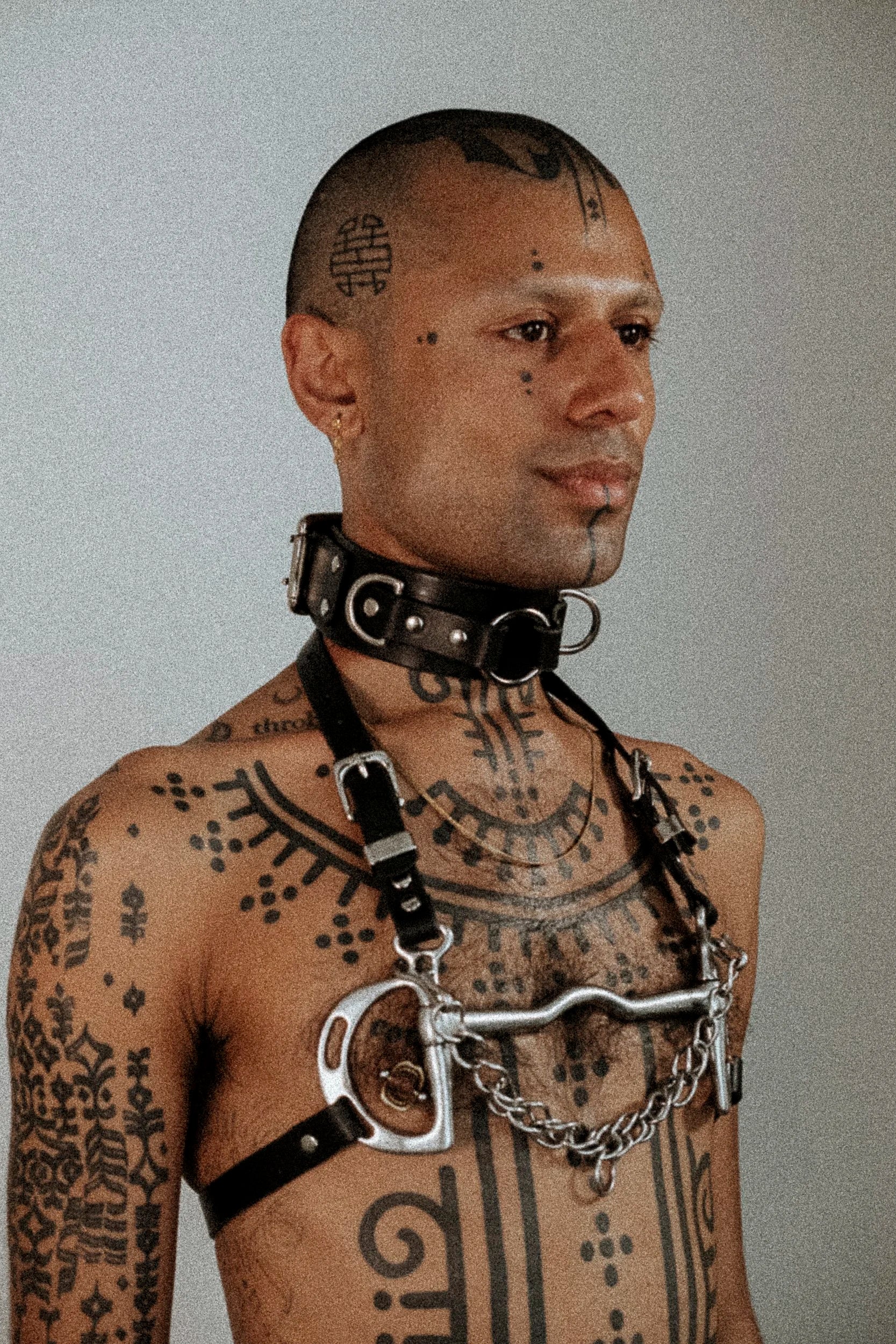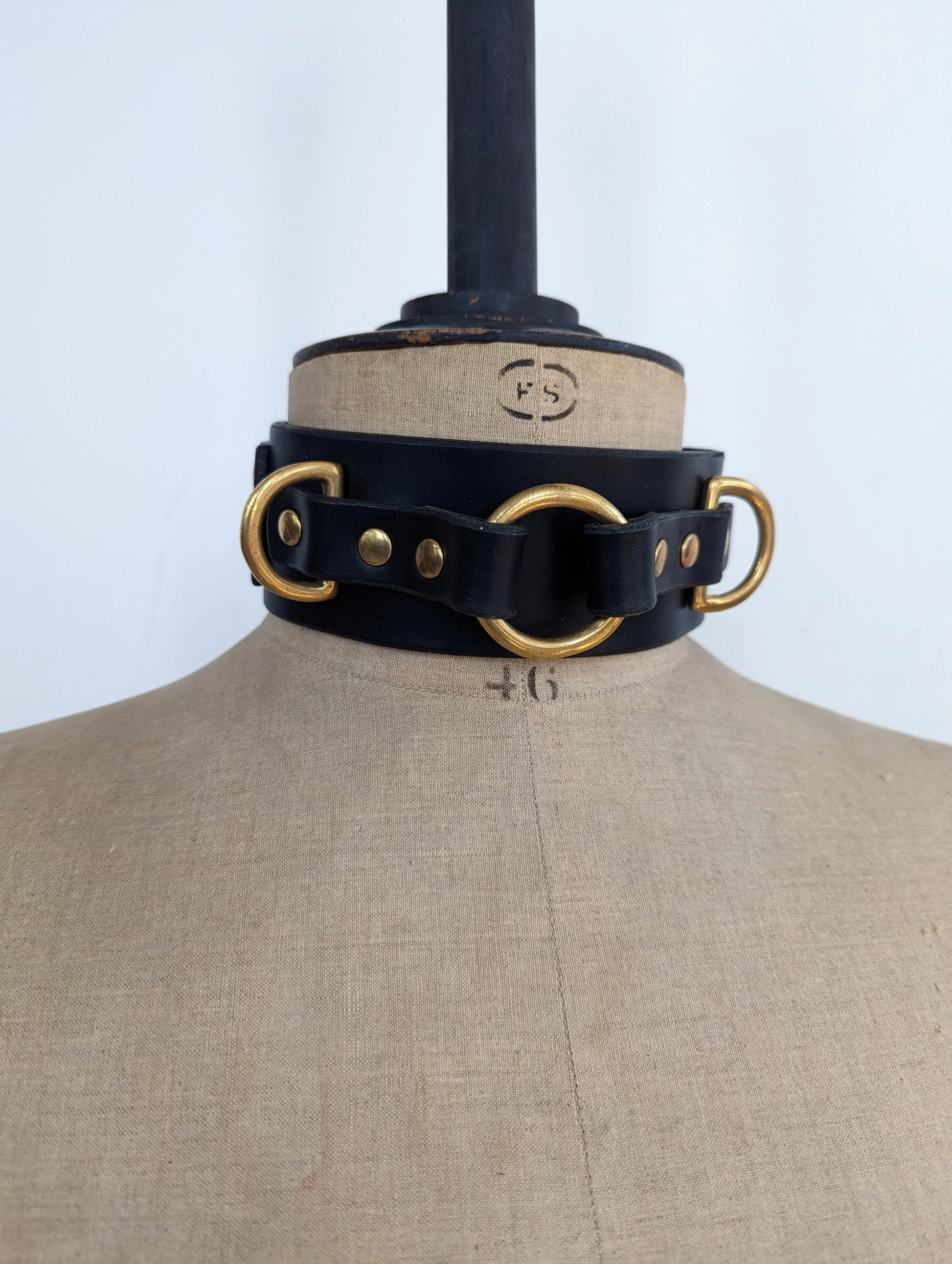 The accompanying lead provides a physical connection between the dominant and the submissive, a way to guide and control, and a sign of trust. Finally, the wrist or ankle cuffs are a way to restrain and immobilise, adding a level of vulnerability and surrender to the experience. Together, these pieces represent the power dynamic and trust between partners that are at the core of BDSM relationships.