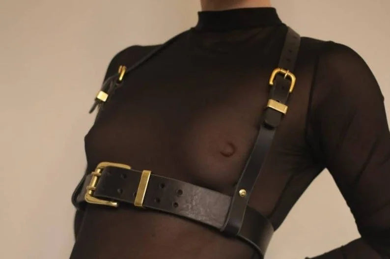 The Underbust Harness is the best-selling leather harness that is versatile for any occasion. It is designed to accentuate and enhance your figure, making it a must-have piece for your wardrobe. Whether you want to add a touch of edge to your everyday outfit or make a statement at a special event, this harness will do the trick. Its heavy duty hardware sets it apart from the rest and is sure to turn heads wherever you go. This thick and sturdy leather harness is suitable for any body shape and size, and its unisex design makes it accessible to all. Whether you prefer to wear it as a standalone piece or with clothing, the Underbust Harness is a versatile accessory that you will reach for again and again.