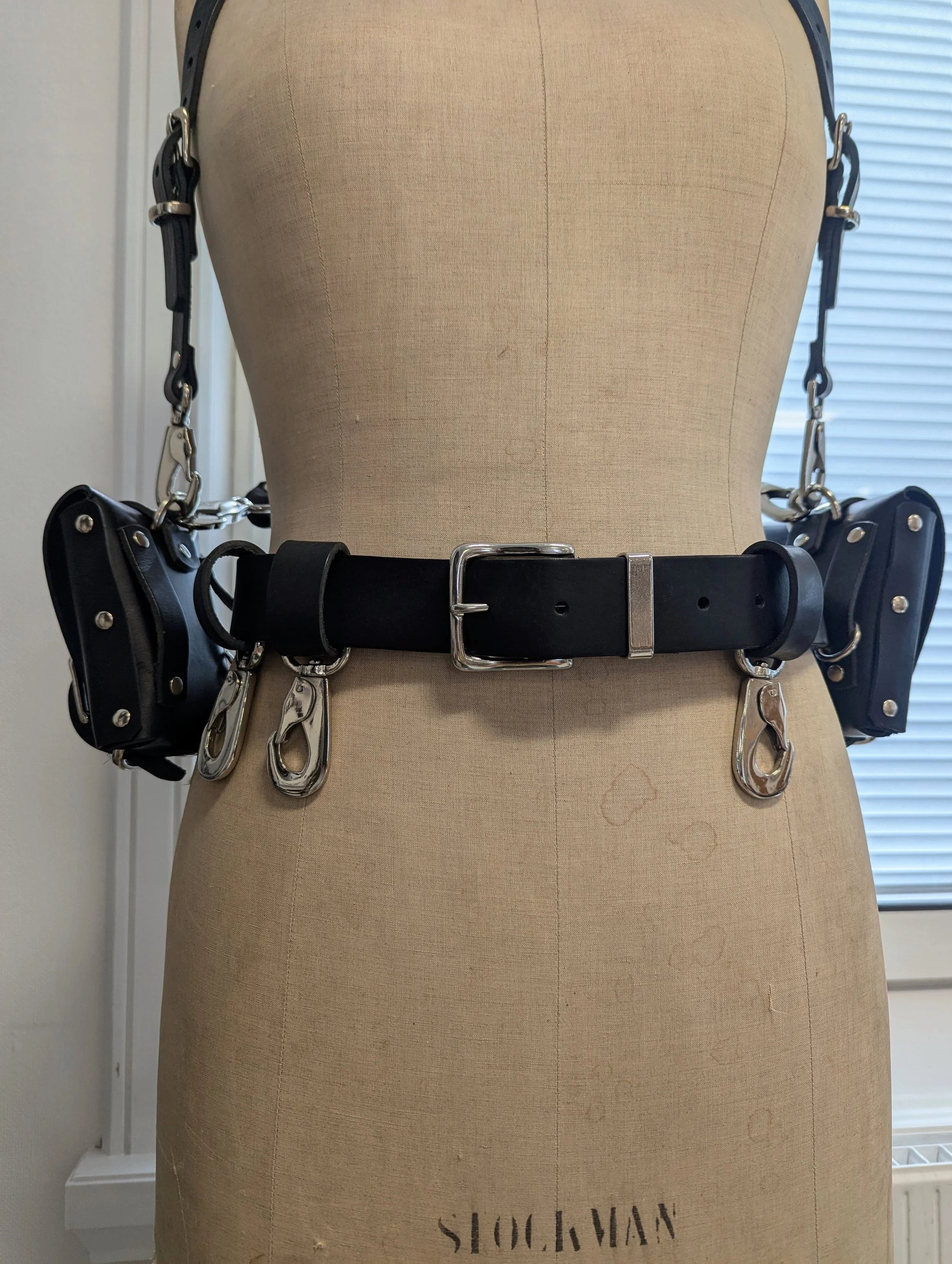 Well, the time has come to get your tools clipped safely to you. By tools this could be all manner of devices and implements you’re taking with you on your evening escapades. Each of the loops has a sturdy clip (and handsome ones at that) in addition to a popper closure, this closure will enable you to remove the clips if you desire or to hang more implements.